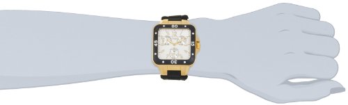 Truly a remarkable timepiece with loads of character, the Invicta Women's 1301 Angel Collection Multi-Function Black Rubber Watch will quickly grab the attention of any passersby with an eye for fashion. This sporty timepiece begins with a square 36mm gold-toned stainless steel case with a black plastic bezel with both dot and Arabic markers. The right side of the case boasts a protected textured crown. These elements hug a pristine white dial, which is protected by a flame-fusion crystal and features gold-toned Arabic hour markers and gold-toned luminous hands powered by reliable Japanese quartz movement. The dial also features three multifunction sub-dials offering day, date and 60-minute displays. A black silicone rubber bracelet straps this watch to the wrist, while a buckle clasp ensures its secure placement. Finally, this watch boasts water resistance up to 99 feet (30 meters). With a look that brings a lot of personality to the wrist, this watch may become one of the most popular members of your accessories collection.
